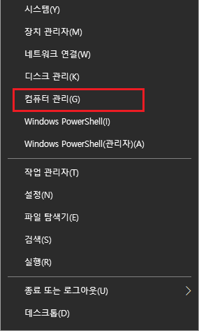 - Windows 키 + X를 누르고 “컴퓨터 관리”를 선택합니다.