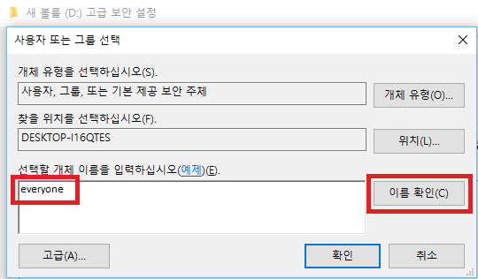 - “변경”을 클릭하고 “사용자 또는 그룹 선택”을 선택한 다음 “이름 확인” 버튼을 누릅니다.