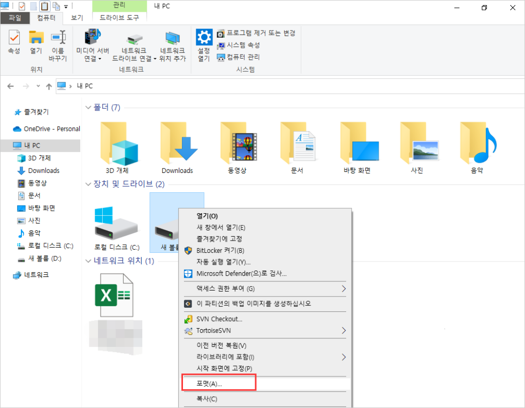 - USB 드라이브를 마우스 오른쪽 버튼으로 클릭하고 “포맷” 옵션을 선택합니다.