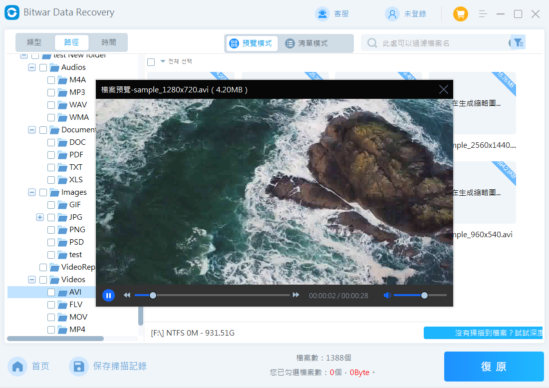 그런 다음 데이터를 저장할 대상 (동영상 포함) 에서 데이터를 확인합니다. Bitwar Data Recovery는 더 이상 복구되지 않은 상태에서 RAW 포맷된 각종 데이터를 미리 볼 수 있습니다.