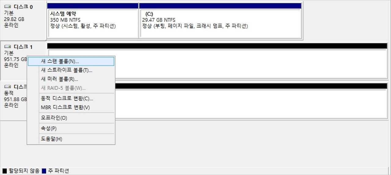 기본 디스크를 동적 디스크로 변환하려면 아래 단계를 따르세요.