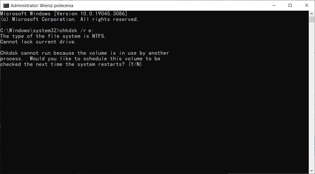 5. 원인이 불량 섹터일 수 있는 경우 명령 프롬프트에 CHKDSK/R을 입력하십시오.